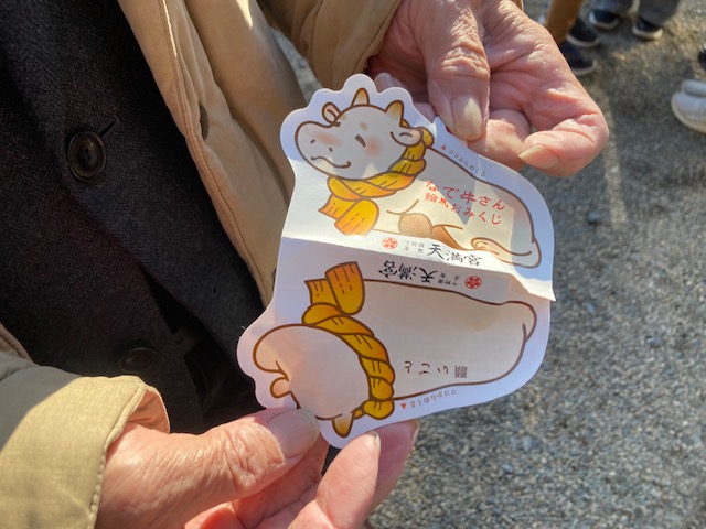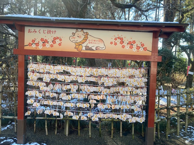 ☆うしみくじをひいたら、吉でした。おみくじかけにしばってきました。