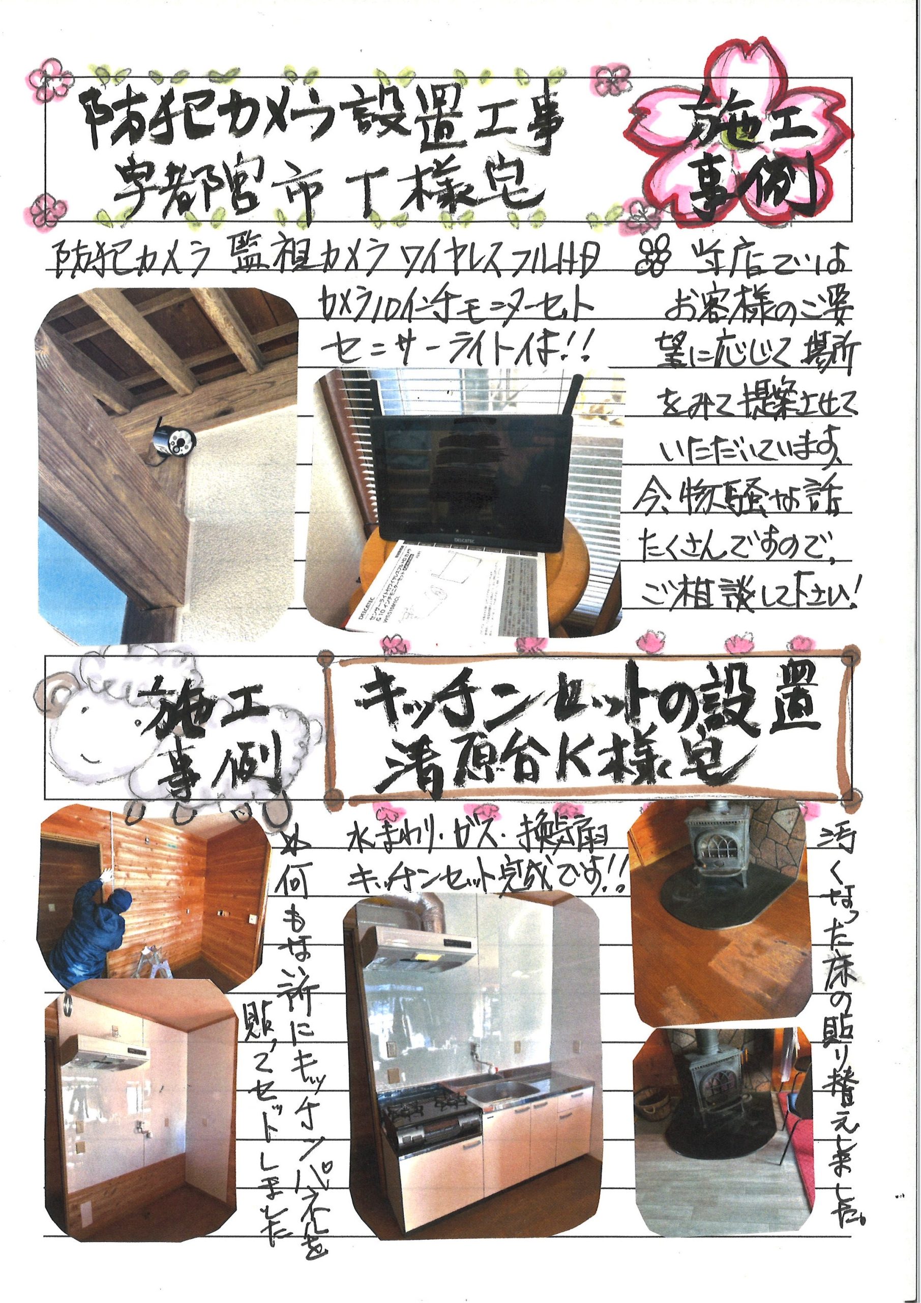 ☆3枚目は防犯カメラ設置工事とキッチンセットの設置です。